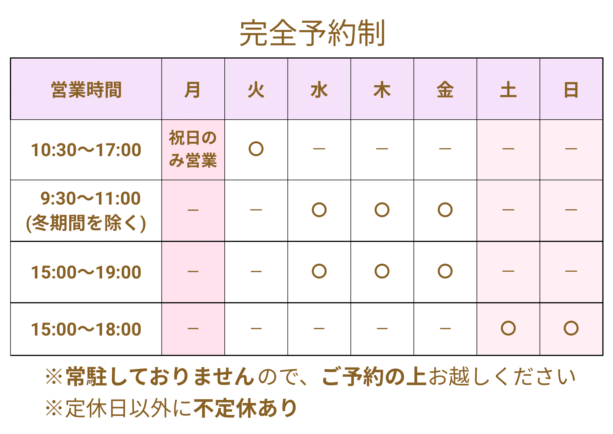 《完全予約制》